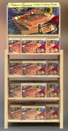 Retail Displays Close Window ![]() ![]() ![]() Wood Display 47.5 " tall x 28" wide x 21" deep ![]() Display Header Sign 17 " x 28 " ![]() Display holds 60 - 3 plank packages ![]() View assembly instructions ![]() ![]() ![]() ![]() ![]() Cardboard Display Holds 12 - 12" and 4 - 16" packages ![]() The left display holds 20 - 12" packages The center box is the shipping box for both and contains the planks, display and base. The right display shows the inserts where the 12" planks reside. (as in the upper display) Call or write for details Close Window ![]() ![]() ![]() Cedar Cooking Planks ![]() A product of Cedar Import info@cedarimport.com ![]() © Copyright 2004 Cedar Import All Rights Reserved ![]() |